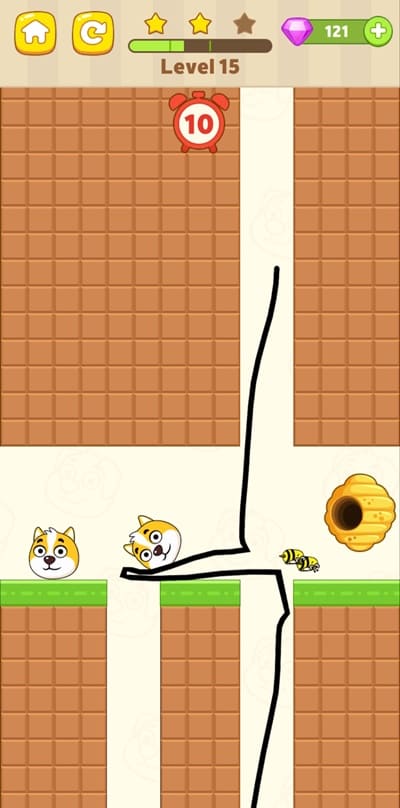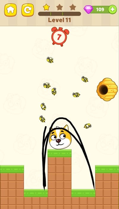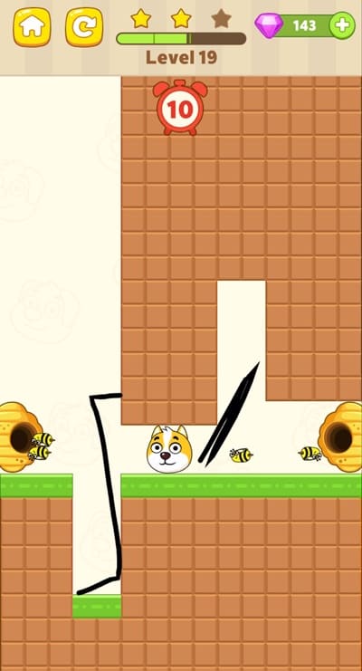 『Save the Dog』は、線を引いて犬を危険から守るというユニークな発想のカジュアルパズルゲームです。