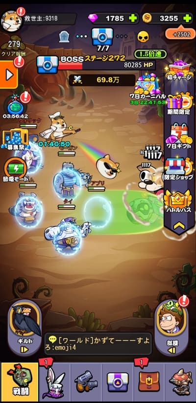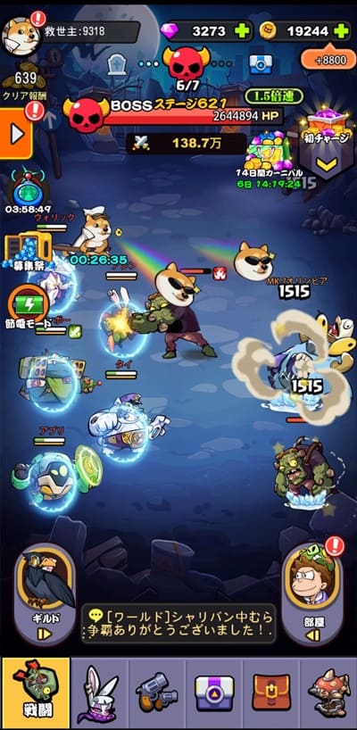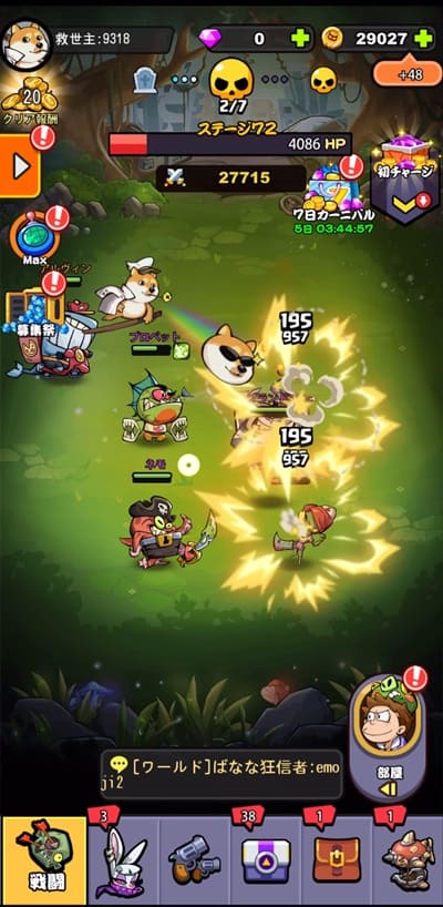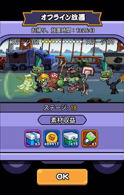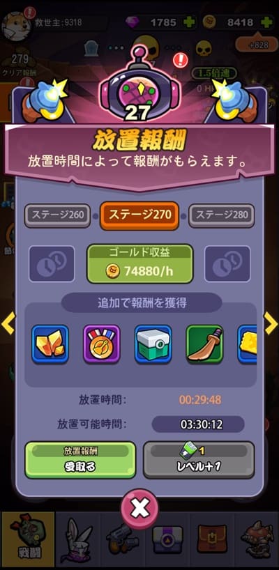 先ほども言ったように、このゲームは放置していてもステージが進んでいくんです。