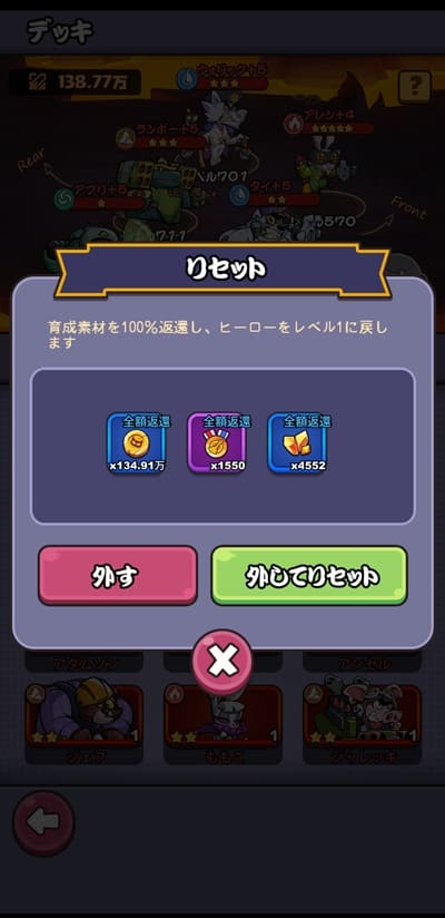 新しいヒーローが手に入ったとき、「また最初から育て直しか…」と思いきや、今まで育ててきた経験値をそのまま引き継げるんです!